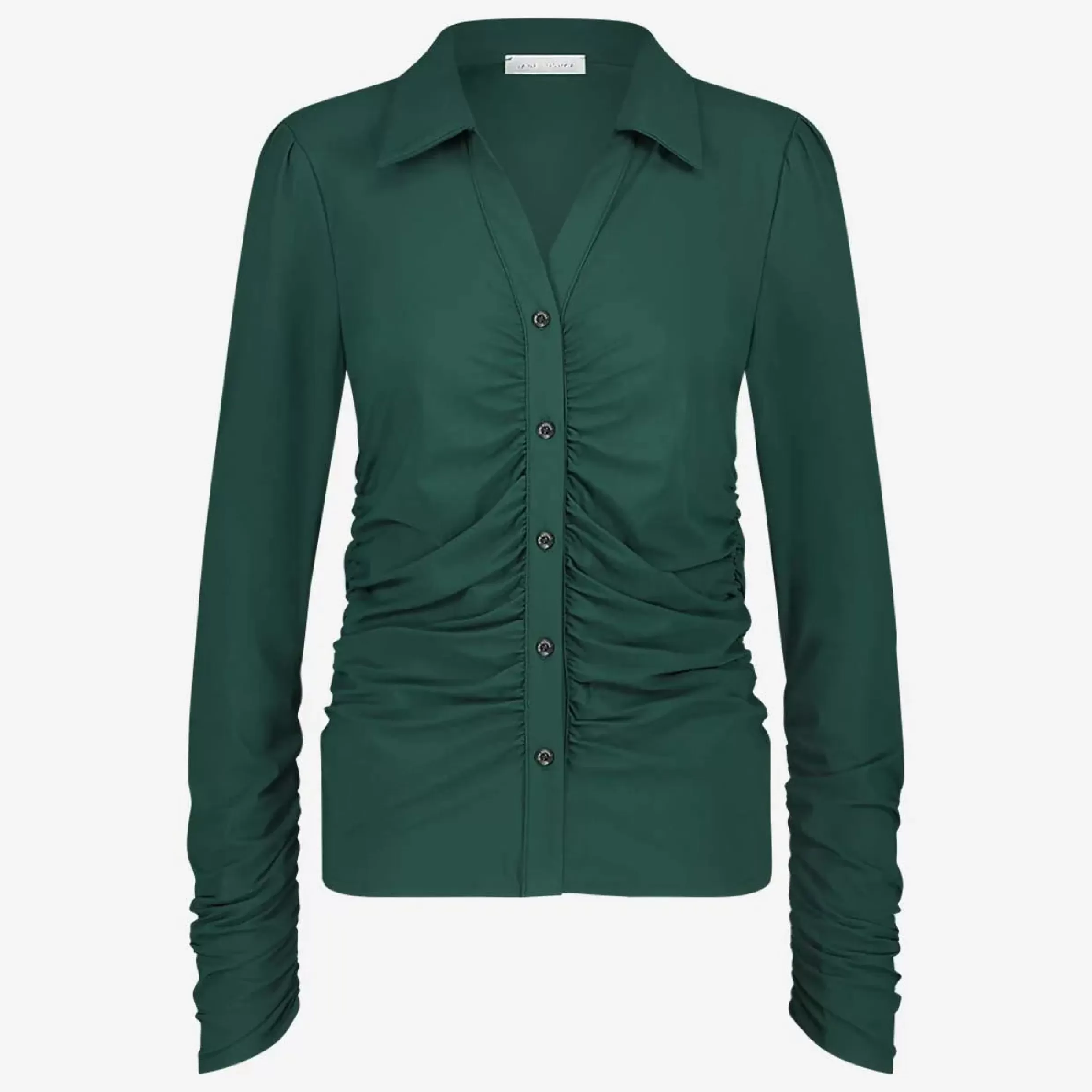 Verhoog je garderobe met de Luisa Blouse, zorgvuldig vervaardigd uit hightech jersey. Deze stof zorgt voor een soepele en comfortabele pasvorm, die zich prachtig aanpast aan de vorm van je lichaam met behoud van een elegante drapering.