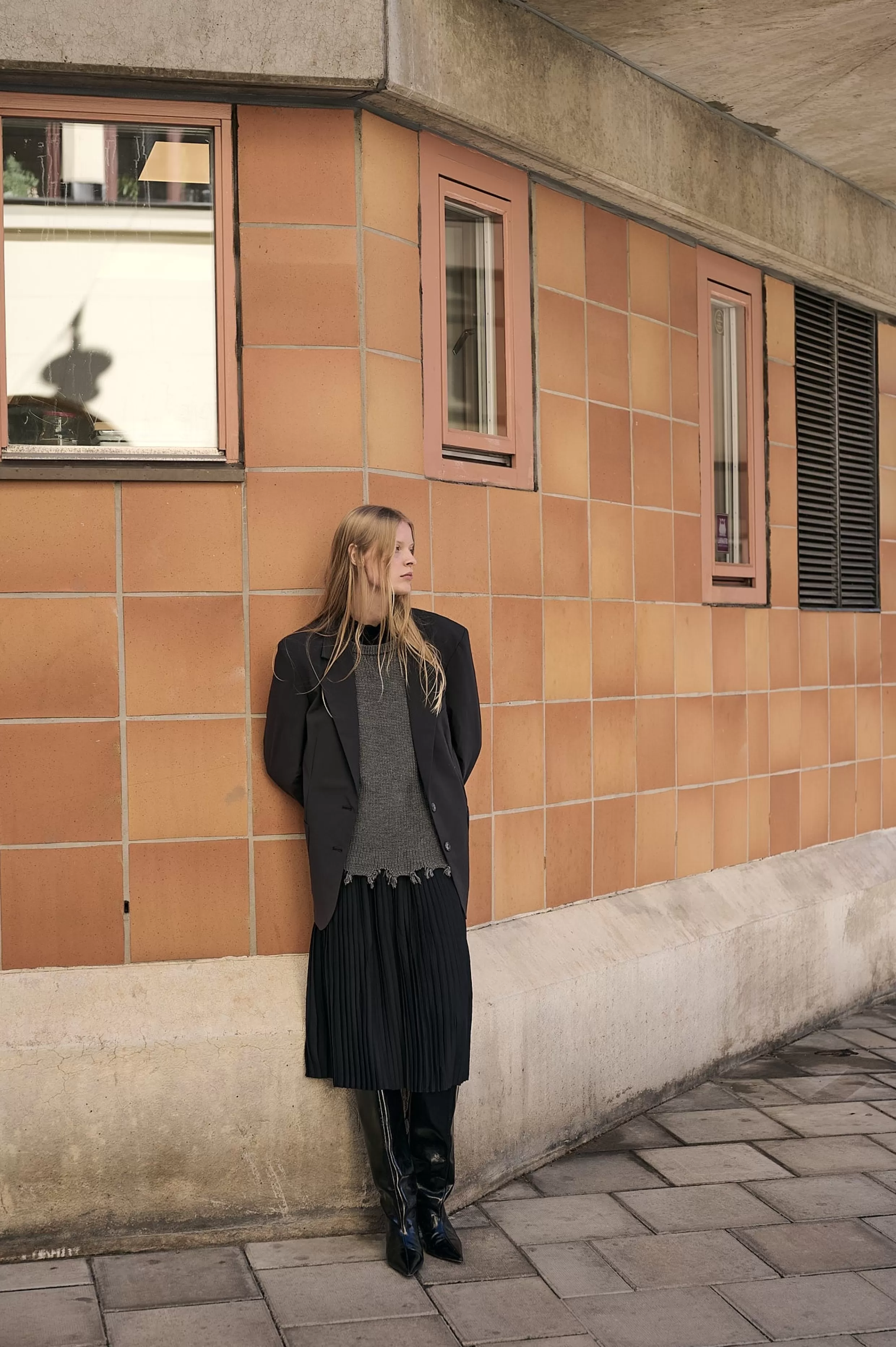 Omarm ingetogen elegantie met de Senia Plisse Rok, gemaakt van uni poly stof. Deze rok heeft delicate plooien die sierlijk vloeien bij elke stap en biedt een tijdloos en veelzijdig ontwerp dat geschikt is voor verschillende gelegenheden.